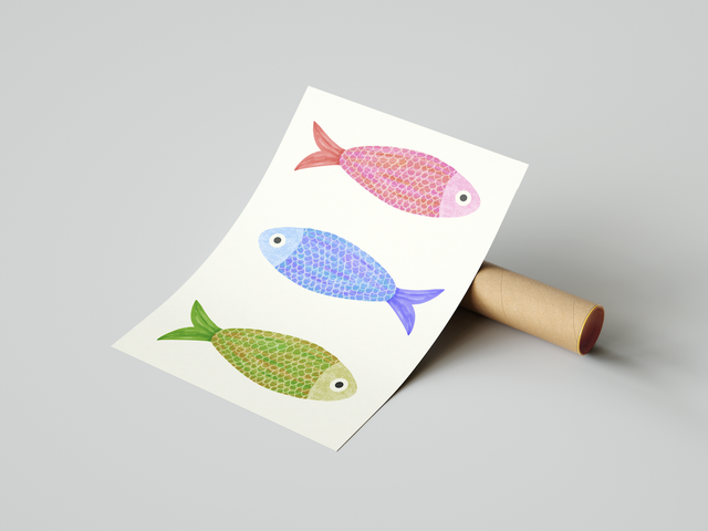 Colourful little fish print, on an off-white background. Printed on quality archival paper and packaged safely.